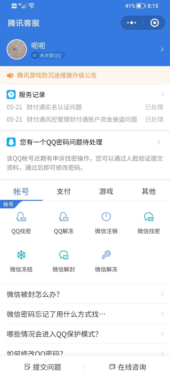 关于qq号被申诉,微信客服小程序提醒的问题